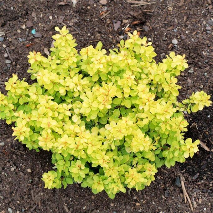 Барбарис образует куст, высотой 50 сантиметров и до 1 метра в поперечнике, с плотной подушкообразной кроной и короткими побегами, густо покрытыми мелкой овальной листвой. Салатово-золотистый оттенок сохраняется у многолетника только при посадке на солнце.