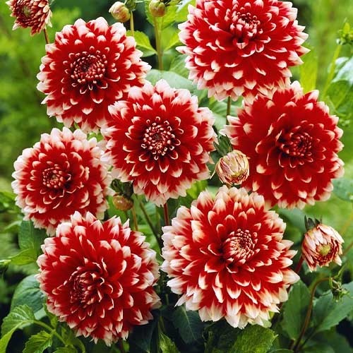 Саженцы и рассада декоративной георгины Ред энд Вайт Фубуки (Dahlia cultorum) — одно из новых достижений голландской селекции. Её сразу заметно в любом саду, так горят малиновым окрасом крупные шаровидные цветы. Этот насыщенный цвет удачно подчёркивают беленькие кончики многочисленных лепестков. Да и само растение выделяется мощным, высоким стеблем, вырастающим до 120 см.