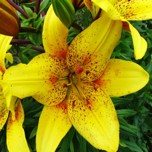 • Окраска цветка : цветок желтый с темно-коричневым частым крапом