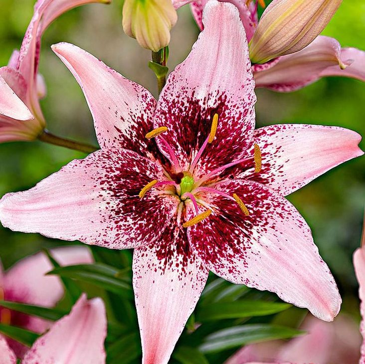 • Окраска цветка : светло-розовый, многочисленные пурпурные крапинки на лепестках вокруг центра