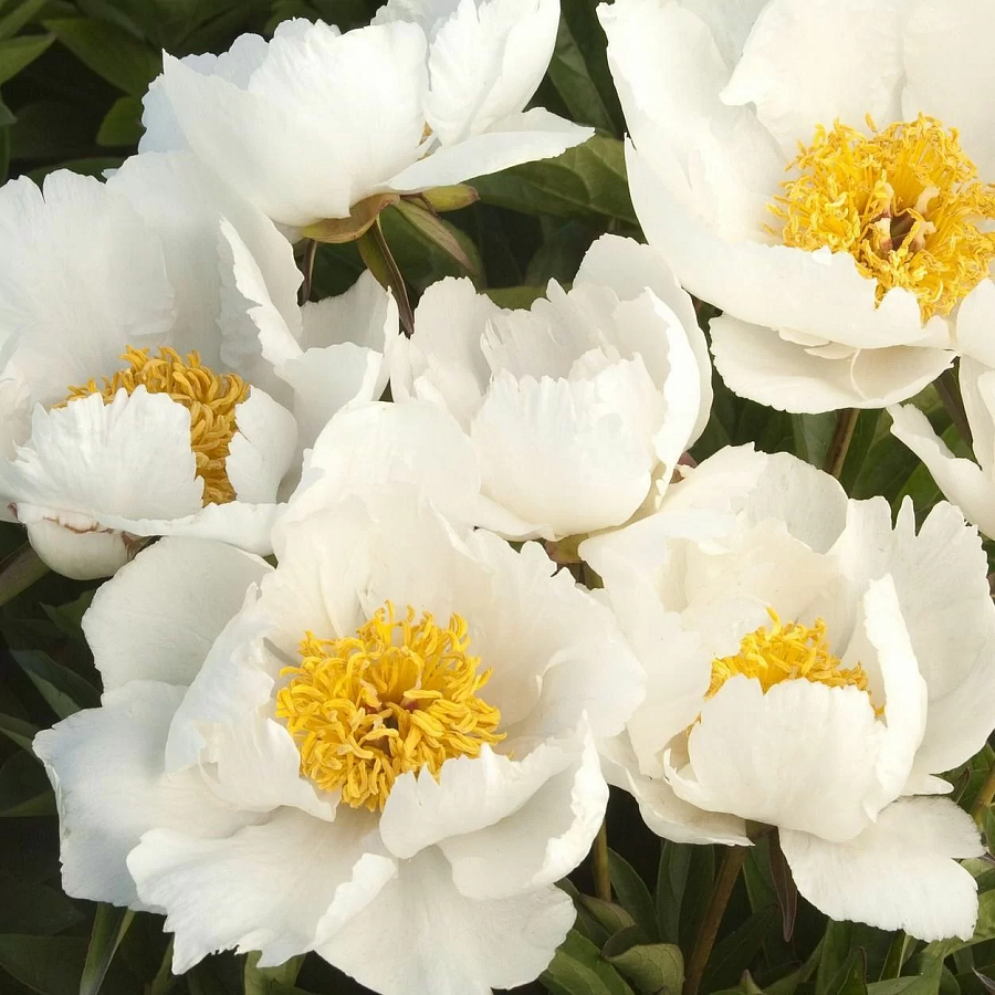 Саженцы пионов Кринклед Уайт (Krinkled White) относятся к неприхотливым растениям. Куст компактный, не разваливается, густо покрыт цветками. Цветоносы прямостоячие, тонкие, но прочные. Ветер и дождь им не страшен. Период цветения – конец весны – начало лета. Цветки белоснежные с желтым центром, а при распускании - нежно-розового окраса. Они не поникают под тяжестью, а обращены вверх. Размер цветка – около 18 см. Саженцы пионов Кринклед Уайт красиво смотрятся в цветниках и в бордюрах, вдоль заборов, тротуаров или стен. Универсальный срезочный сорт.