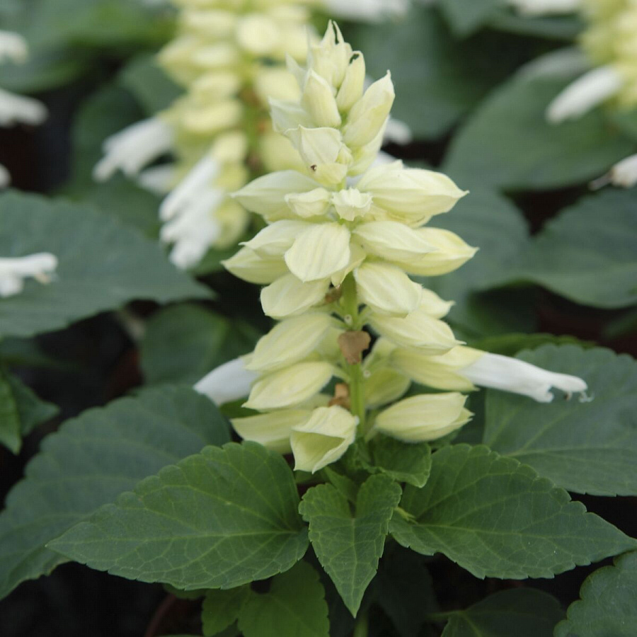 Сальвия Reddy White - это удивительное растение с белыми цветками, которое поражает своей изящностью и красотой. Его стебель прочный, листья имеют интересную форму и насыщенный зеленый цвет. Высота этого растения может достигать 25-30 см, что делает его идеальным выбором для групповых посадок в саду или на клумбе.