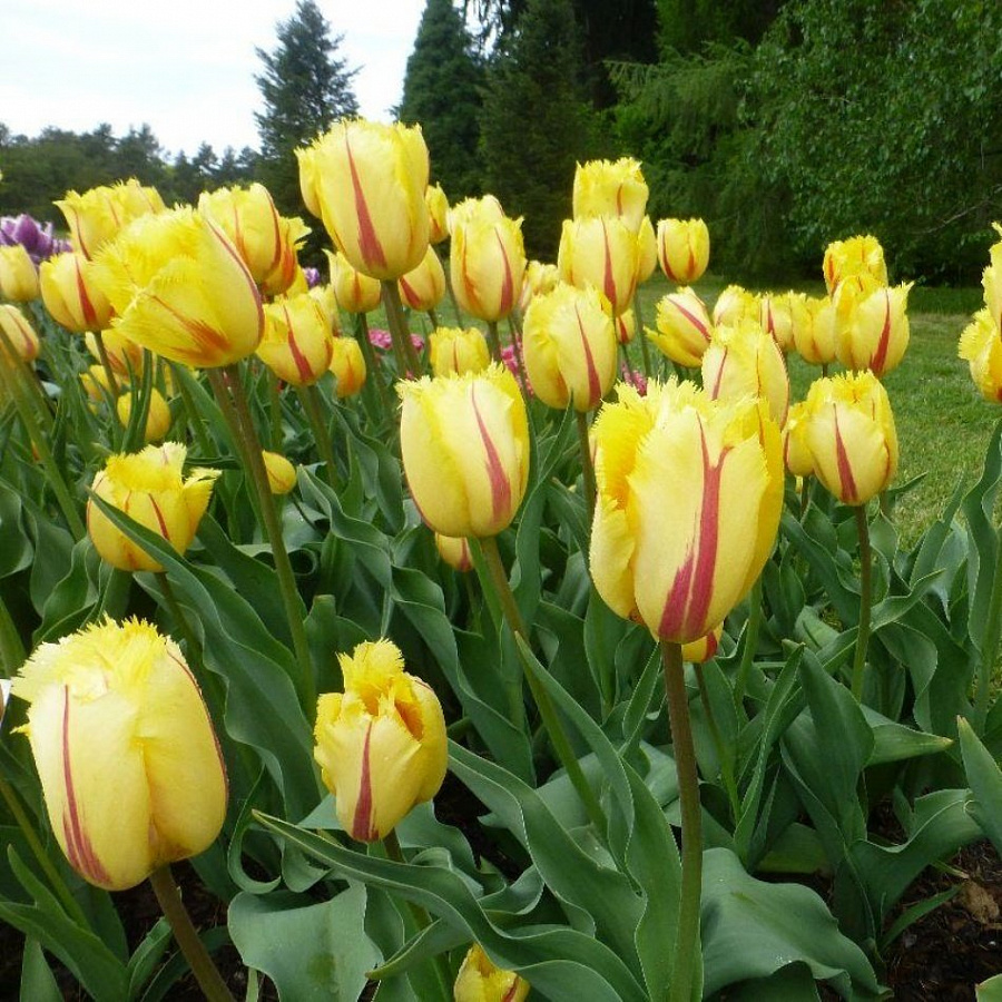 Тюльпан Фламенко - это настоящий танец красок в вашем саду! Этот сорт тюльпанов поразит вас своей уникальной окраской цветков - желтый с красным пламенем, создающим неповторимый огненный эффект. Высота растения достигает до 50 см, что делает его идеальным выбором как для групповых, так и для одиночных посадок. Листья тюльпана Фламенко имеют форму, напоминающую 40 маленьких лепестков, что добавляет изысканности этому растению.
