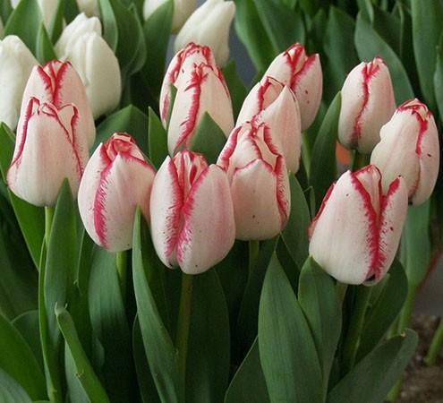 Луковицы тюльпана Плейгел (Playgirl) дают великолепный сорт цветов. Цветут в начале мая яркими белыми с красной каймой бокалами классической формы. Высоты достигает 70 сантиметров. Ему нужно: