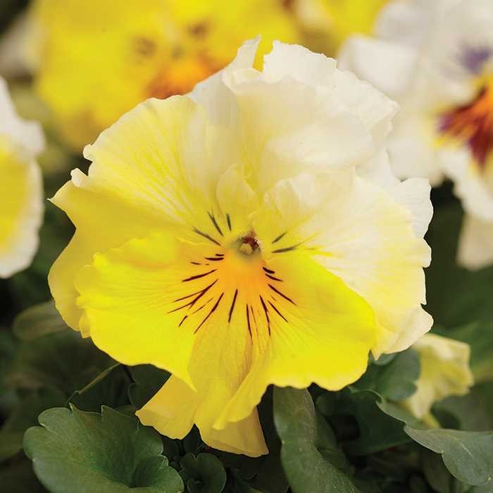 Виола Frizzle Sizzle Lemonade - это удивительное растение с бело-желтыми цветками, которые радуют глаз своей нежной окраской. Сорт отличается компактным размером до 20 см и красивыми листьями, создающими уютный уголок в вашем саду. Это растение предпочитает полутень и плодородные почвы, идеально подходит для групповых посадок.